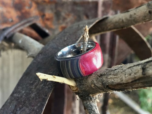 Fordite, also known as Detroit agate or Motor Agate, is old Ford automobile paint which has hardened sufficiently to be cut and polished. It was formed from the buildup of layers of enamel paint slag on tracks and skids on which cars were hand spray-painted (a now automated process), which have been baked numerous times. It's a beautiful moment when the piece of Fordite is able to be cut, cored, polished and set with resin into a ring. Fordite is rare and this is a one of a kind, unique piece of American history, right on your finger. Size 7, 10mm wide. Contact us with any questions!